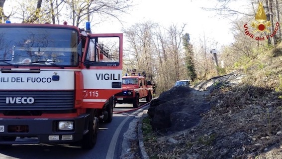 LESA -04-04-2021 -- Dalle 15 circa del giorno di Pasqua, una squadra dei vigili del fuoco di Arona è stata impegnata in un incendio di un bosco sulle pendici del Vergante tra le province di Novara e VCO. la zona interessata dalle fiamme è quella fra Lesa e Carpugnino. Sul posto sono intervenute anche squadre Aib ed un elicottero Eriksson. L'intervento era ancora in corso in serata.