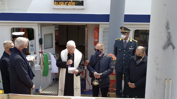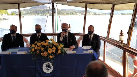 ARONA - 16-04-2021 -- Presentata venerdì 16 aprile ad Arona la prima motonave ibrida/diesel "Topazio" in servizio nelle acque interne Italiane. La presentazione è avvenuta alla presenza dei vertici di Navigazione Laghi.