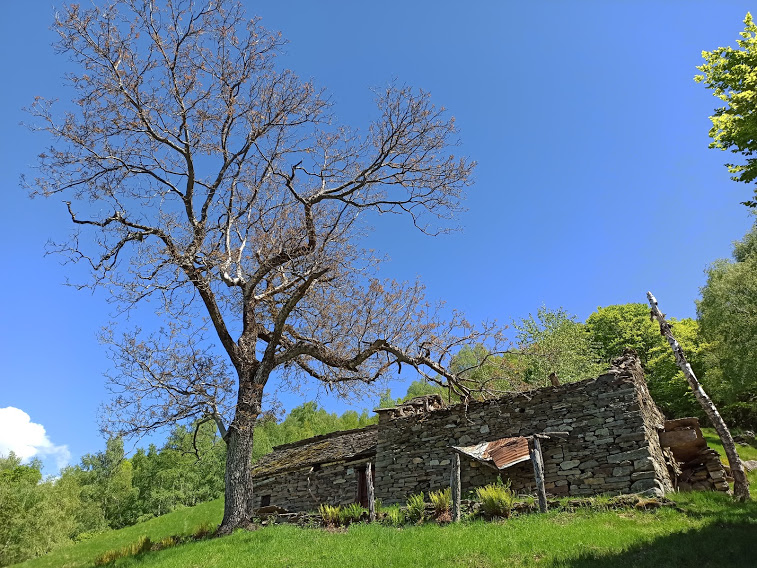 PIEMONTE- 30-05-2021-- Il caldo non arriva e le temperature, ideali per camminare, ci consentono di alzare un po' l'asticella ed iniziare gite di buon dislivello in previsione delle “cose serie” programmate per l’estate. Per ora ci limita ancora la neve presente sotto i duemila sui versanti nord, ma va bene così. Abbiamo rivisto, dopo anni, un bellissimo alpeggio, purtroppo quasi totalmente abbandonato e con sentieri un po' trascurati.