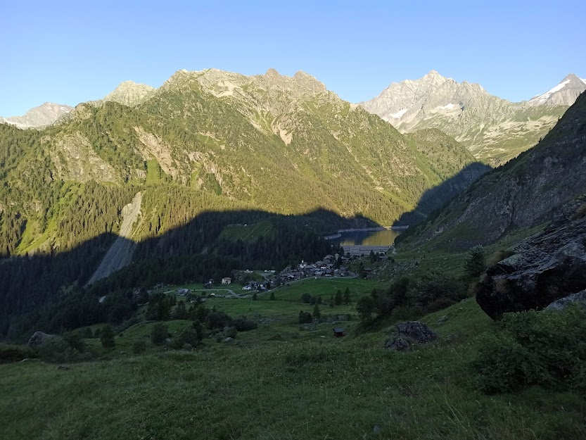 Siamo quasi imbarazzati dal poter camminare rilassati e vedendo dove mettiamo i piedi. Teniamo la destra (ovest) e raggiungiamo i ruderi degli Alpi di Ro Superiori. Risaliamo per meno di cento metri e chiudiamo l’anello odierno a Cavallo di Ro (poco più di un’ora dalla pausa pranzo). Un’ora di tranquilla discesa ci riporta a Cheggio. Una birra fresca al Rifugio Città di Novara chiude in bellezza la faticosa e calda giornata.