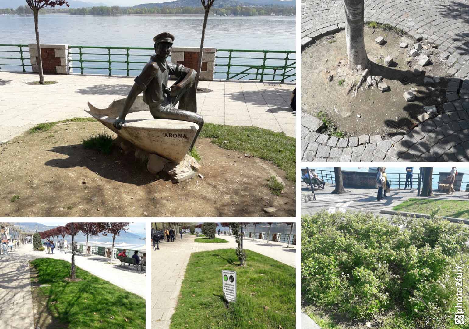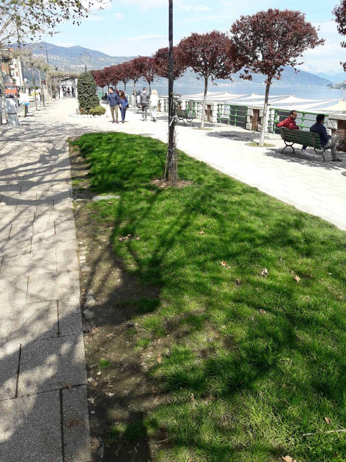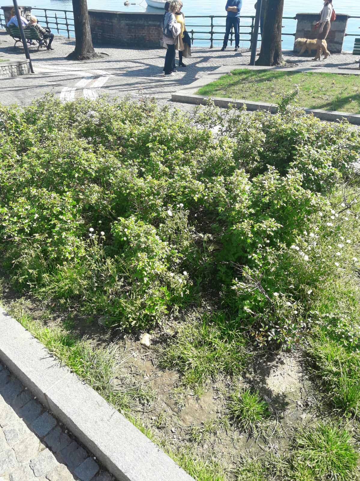 ma i turisti ad Atona ci sono già. Mentre i colori degli ombrelli colorati risaltano sul Corso Cavour e si discute in Comune sull’opportunità o meno di rifare il lungolago lo stesso è in parte espugnato da erbacce e degrado. Queste foto sono delle aiuole della parte che va dal monumento al barcaiolo al Glicine. L’aiuola che ospita il monumento al barcaiolo in pratica non esiste più. Non stanno meglio le altre, con erbacce, nessun fiore, cartelli vecchi. Proseguendo verso sud un certo miglioramento c’è, ma ad esempio le “rose del buon governo” per cui furono spesi migliaia di euro dalla gestione Catapano, sono in pratica sparite. Ed anche in altre aiuole l’erba è alta ed infestante. Vicino all’imbarcadero da tempo ci sono dei cubetti di porfido fuori dagli spazi. Nella passeggiata bassa fioriere con piante secche davanti al Marconi Beach. Un brutto biglietto da visita per un lungolago che non pare essere apprezzato da molti e che non è molto curato.