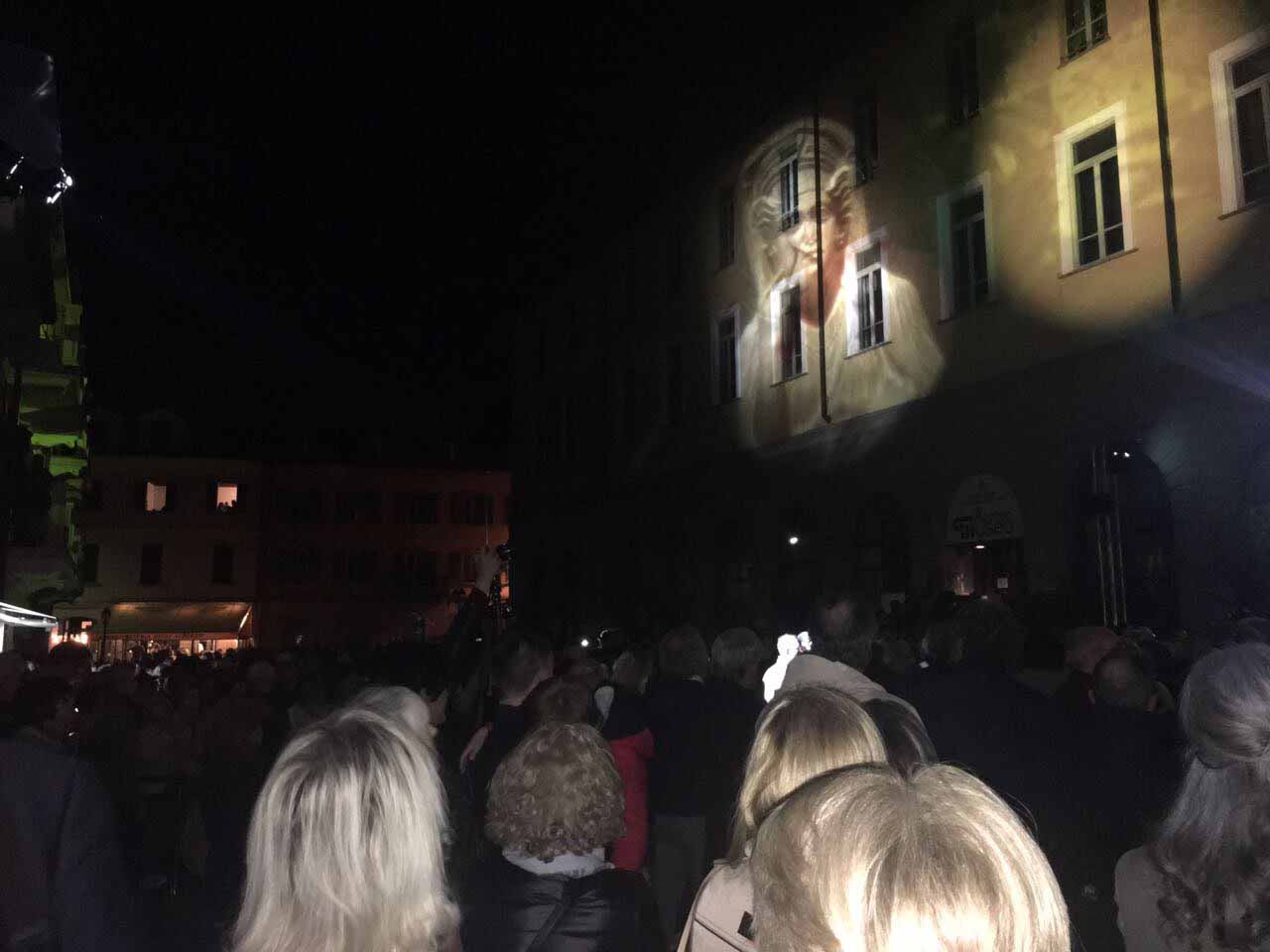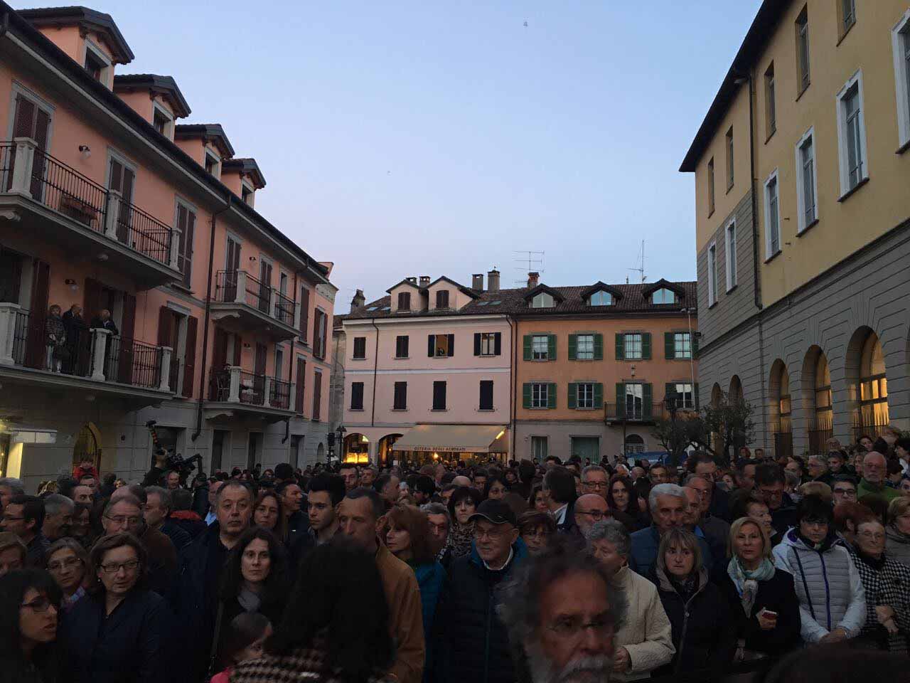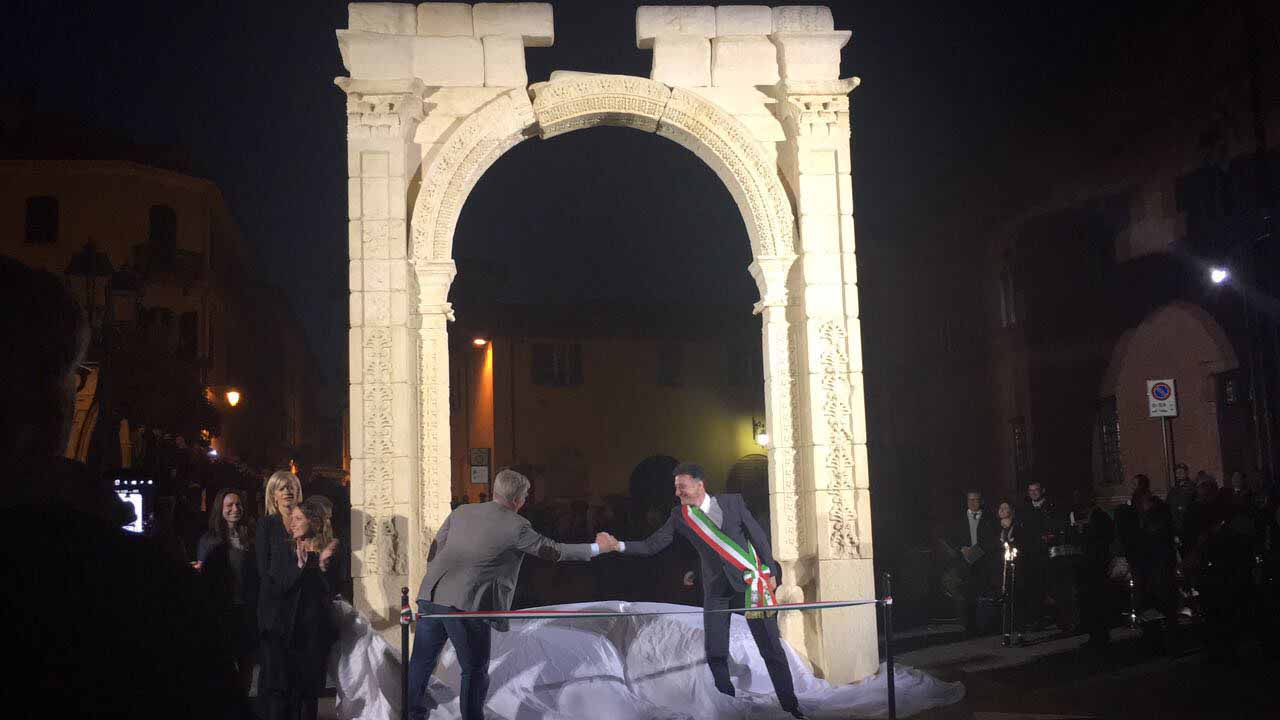 ARONA- 30-04-2017- Tanta emozione, e qualche lacrima di commozione in ricordo del sacrificio di Khaled al-Asaad, l'archeologo trucidato dall'Isis perchè rimasto per preservare il sito di Palmira, ad Arona sabato sera per l'applauditissima inaugurazione della ricostruzione tridimensionale dell'Arco di Palmira, che approda sul lago Maggiore dopo le prestigiose vetrine di New York, Londra, Dubai e Firenze, dove resterà per tre mesi. Sino alla fine di luglio ogni sera ci sarà uno spettacolo di luci e suoni: “E' un'iniziativa che nasce dell'intitolazione del nostro museo cittadino a Khaled al-Asaad- spiega il sindaco di Arona Alberto Gusmeroli- è stato un archeologo incredibile, ha dedicato la vita per preservare Palmira, rimanendo in città con l'invasione dell'Isis, rimanendo trucidato. Sono mesi che lavoriamo per questo momento importante, non solo per noi di Arona, ma per tutto il territorio. Vediamo come la civiltà, una cultura millenaria è più forte della barbarie. Avremo tutte le sere uno spettacolo musicale e di luci che abbraccerà la piazza e l'arco, avremo incontri e momenti di riflessioni, l'apertura del museo e la chiave di volta di Palmira. Tanti motivi per avvicinarsi ad un mondo importantissimo come quello della nostra storia, ma anche ad Arona ed al nostro museo. Un gemellaggio fra Arona e Palmira su cui abbiamo creduto guardando anche al futuro degli studi archelogici di Arona, oggi abbiamo annunciato che Politecnico di Milano ed Università Cattolica faranno con noi un progetto, mandando gli studenti a studiare la parte più alta della Rocca per fare sondaggi ed una campagna di scavi”.