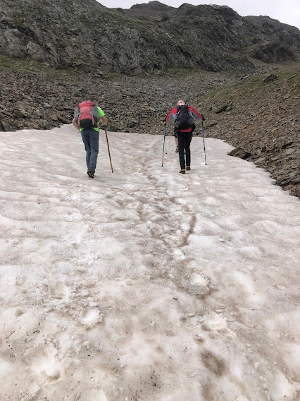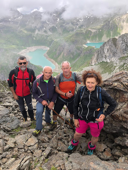 La presenza della nostra prestigiosa guida walser ci fa optare per l'alta Val Formazza. Le previsioni sono buone, ma oggi la nostra fiducia sarà tradita. Siamo in sei e la formazione odierna prevede anche il medico di turno e la badante titolare. Parcheggiamo al Rifugio Bim Se, sotto la diga di Morasco, 1800. Per ora splende il sole. Sul sentiero G95 della GTA arriviamo all'Alpe Nefelgiù, 2048, nella parte iniziale e pianeggiante del maestoso vallone che s'inerpica verso sud (poco meno di un'ora). Più avanti abbandoniamo l’evidente sentiero che sale al Passo di Nefelgiù e seguiamo la guida su tracce che lui ben conosce, tenendo la sinistra.