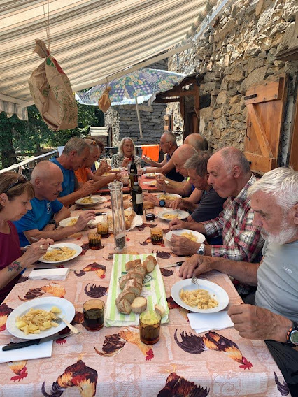 L’atmosfera incantata che si crea, ben nota a chi conosce il legame inscindibile fra montagna e amicizia, fa volare il tempo, che qualcuno utilizza anche per una pennichella a tavola. Al decano del gruppo agonistico viene donata la posata di servizio della “pasta rustìia” in modo che possa ultimare a casa, con calma, il recupero dello splendido condimento rimasto attaccato. Dopo aver sancito la nostra amicizia e la riconoscenza per la bellissima giornata con una dedica sul “diario d’alpe”, con dispiacere torniamo verso valle.