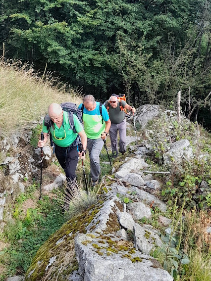 La squadra odierna è guidata dalla badante titolare e dal medico di turno. La seconda badante ci raggiungerà direttamente a tavola, dovendo oggi badare al marito. Del gruppo agonistico fanno parte anche un anziano ex alpinista acciaccato, in lenta ripresa, un quasi giovane runner, anche lui in ripresa, e cinque dipendenti INPS in discreta salute e con grande appetito. La parte bassa del sentiero è in un fitto sottobosco dove afa e umidità fanno sudare in modo indecoroso.