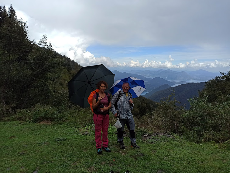 Le previsioni meteorologiche incerte, come spesso ultimamente, ci condizionano non poco. Impegni, malanni e defezioni impreviste fanno sì che ci si trovi solo in tre per un ottimo caffè al bar della stazione di Ornavasso. Non piove più. Troveremo più in alto residui di una recente forte grandinata. Nebbie vaganti e sprazzi di sole premiano i tre coraggiosi di oggi.