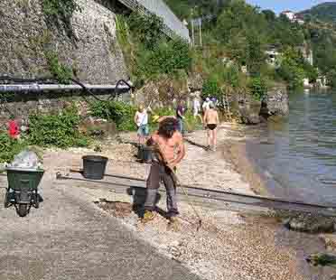 ARONA- 12-06-2017- Un week end dedicato alla pulizia del lago e delle spiagge quella fatta dagli Amici del Lago Onlus e dal Circolo di Legambiente quello appena trascorso: “Sabato è stata effettuata la pulizia della spiaggia libera delle Rocchette- spiegano Gli Amici del Lago – Onlus e dal Circolo di Legambiente- domenica è poi stata fatta la pulizia dei fondali, dove i volontari delle diverse associazioni hanno recuperato, come di consueto, circa 250 kg di cocci di vetro e bottiglie, nelle acque antistanti il lungolago Marconi. Il tributo ambientale che il lago “paga” alla movida aronese”. Nell’ambito della campagna internazionale Spiagge e fondali puliti 2017 (Clean up the Med), il circolo di Legambiente “Gli Amici del Lago” ha organizzato un’operazione di pulizia della spiaggia libera delle Rocchette di Arona: “Come di consueto, oltre al taglio di cespugli ed erbe incolte sono stati raccolti alcuni quintali di plastiche, vetri, parti di vetroresina e rifiuti vari. Particolarmente allarmante, persiste la presenza di polistirolo sbriciolato, come già rilevato nel corso della giornata ecologica organizzata lo scorso mesi di marzo- spiegano i protagonisti-domenica 11 giugno, i volontari di Legambiente hanno partecipato anche alla consueta pulizia dei fondali antistanti il lungolago di Arona, organizzata dalla Pro Loco, in collaborazione con l’Associazione Cral Noi Sea Malpensa, il Club Sommozzatori Marcello Salina, la Croce Rossa sezione di Arona e con i mezzi nautici messi a disposizione dalla Lega Navale di Arona.