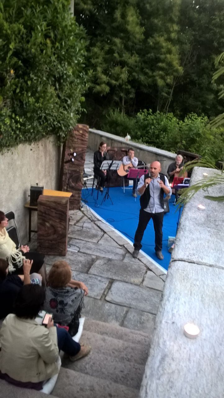 che suscitato la curiosità di un numeroso pubblico, quella dedicata alla reading musical-letteraria “Lei e nessun’altra”, proposta da Fabio Fichera. Nell’incantata magia della scalinata di Comignago al tramonto, nella serata di sabato 10 giugno, si sono così ritrovate una quarantina di coppie che per un paio d’ore hanno ascoltato dalla voce di Fichera e Giuseppe Deiana, accompagnato da Alberto Musetti al violoncello e da Paolo Zanetta alla chitarra, parole e dissertazioni sul più nobile dei sentimenti: l’amore e le sue imperfezioni.