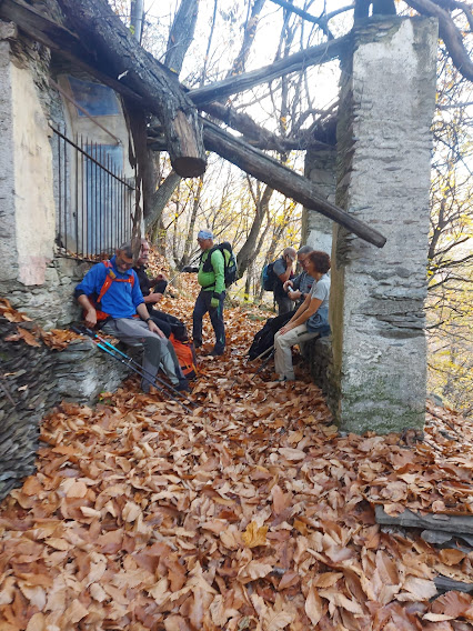 I centocinquanta metri di dislivello non previsti sono una bella “botta” per degli anziani che hanno nelle gambe già cinque ore di cammino. Ora capiamo che i tempi dei cartelli indicatori erano giusti. Sul sentiero del mattino raggiungiamo Intragna dopo due ore da Piaggia. Al Circolo di Cambiasca chiudiamo la faticosa giornata.