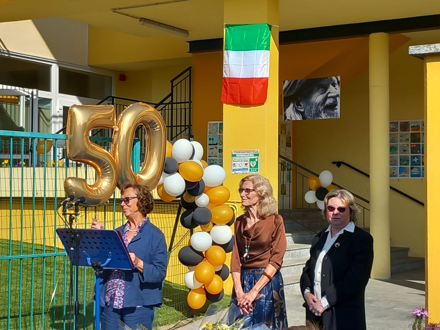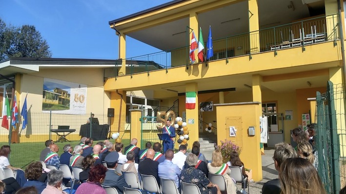 COMIGNAGO –01-10-2023 -- Una grande festa per i 50 anni della scuola "Ungaretti" DI Comignago. E' quella svoltasi sabato 30 settembre, presenti numerosi amministratori del territorio. Il sindaco Daniele Potenza, ha sottolineato i lavori effettuati negli anni:” Gli ultimi fatti sono quelli per la messa in sicurezza ed efficientamento energetico del polo scolastico, con l’isolamento della copertura e la sostituzione delle caldaie per 105.358 euro ottenuti dal ministero. Con nostri fondi abbiamo posizionato prati sintetici, un materassino antitrauma e la fibra ottica per un collegamento internet più rapido. Sono lontani i tempi in cui questa scuola era a rischio chiusura (anni ’90). Ora vengono bimbi anche da altri paesi. Abbiamo un pre scuola quasi gratuito con i nostri volontari comunali. Una scuola a misura di bimbo in quanto dai 6 mesi agli 11 anni si può frequentarla avendo la continuità nello stesso polo scolastico (nido-infanzia-media). Comignago deve essere ricordata per queste eccellenze, non solo perché qui anni fa si sono sposati Belen e De Martino… “.