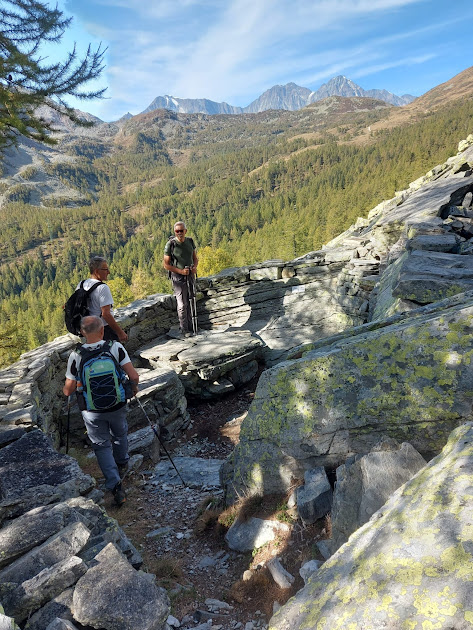 BOGNANCO- 22-10-2023--La prevista salita al Verosso dei Murmäta con gli amici svizzeri Steinböcke e Steingeissen (Stambecchi e Camosce), programmata da mesi, “salta” per un classico caso di organizzazione all’italiana. Ci consoliamo con un’escursione diversa, programmata all’ultimo momento, che consente comunque agli amici d’oltralpe di ammirare la bellezza dell’alta Val Bognanco in una splendida giornata, più estiva che autunnale.