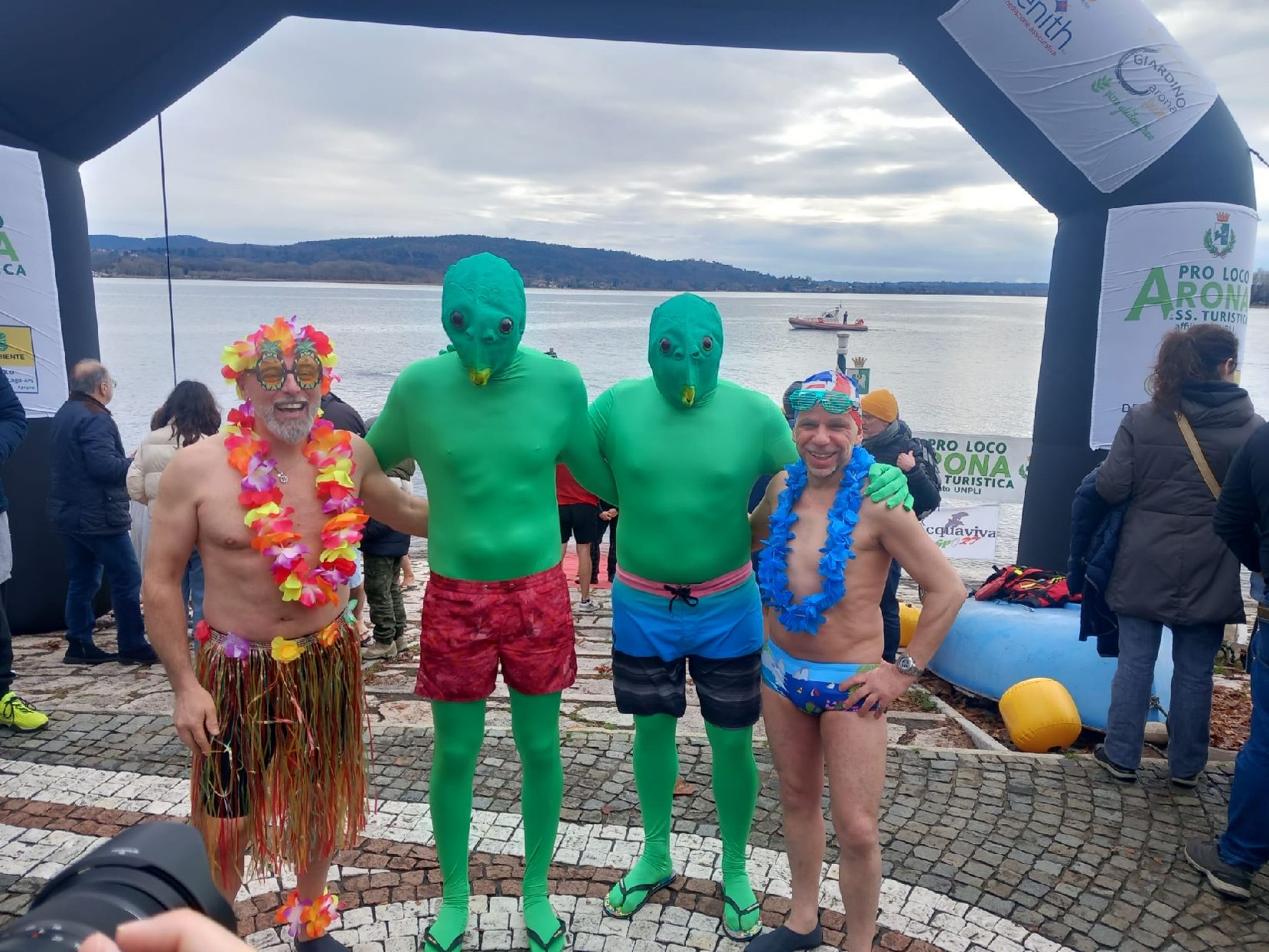 Una targa anche a Carla Barbato, classe 1952, la più anziana in acqua, giunta da Como, al nono tuffo ad Arona, mentre la palma del più anziano è andata a Ivano Bertolini, classe 1947 di Omegna.