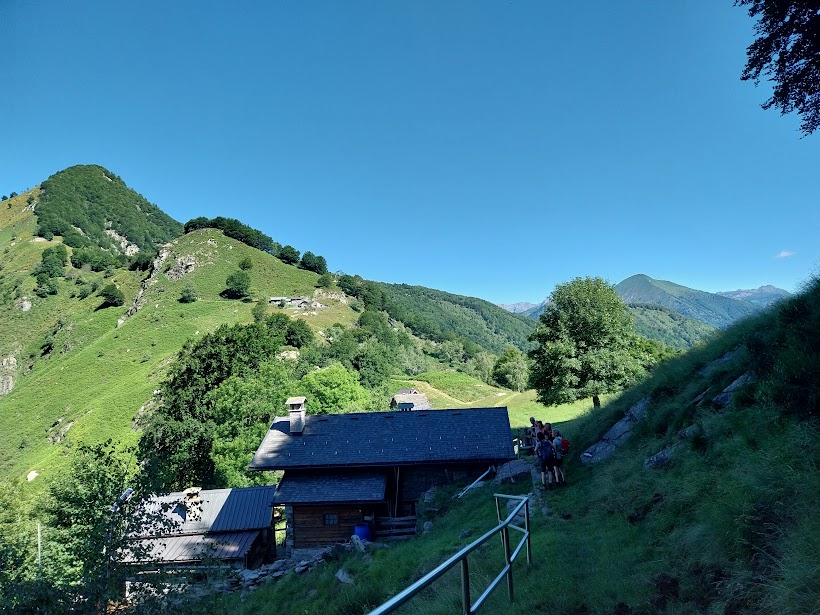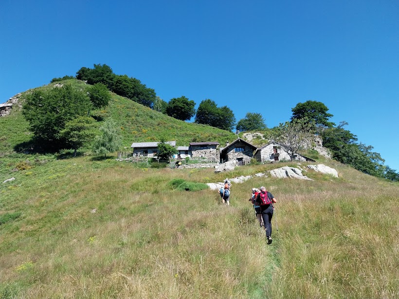 Due giorni prima della gita, che avrei voluto breve e di tutto riposo, il medico di turno che ci accompagnerà mi propone la ripida ascesa al Pizzo Castello, nonostante il mio stato di forma ancora peggiore del solito dopo una vacanza dedicata al cibo e al baby-sitting. Mi promette, il dottore, un passo molto tranquillo ed un’assistenza medica ancora più accurata del solito. Ed è così che cedo miseramente e ci si trova per il caffè a Piedimulera, in una splendida e già calda giornata di luglio. Per fortuna è presente al completo lo staff badanti (quattro), oltre al medico. Si occuperanno di quattro più o meno anziani, uno dei quali al rientro in gruppo dopo una interminabile stagione sci alpinistica. Saliamo a Cimamulera, in località Madonna, 550, minimizzando le auto e posteggiamo. Si sale subito, prima su strada e poi sul ripido sentiero A51, ben segnato fino in vetta. A occidente la Est del Rosa, finalmente bianca come dovrebbe essere sempre un quattromila, domina la scena. Dopo l’Alpe Cascinaccia, 800, passiamo dall’Alpe Sarcera, 886, ed arriviamo all’Alpe Ceresole, 953, dopo poco meno di un’ora. Sostiamo brevemente prima di passare dal fresco del bosco al caldo del sottobosco nel quale camminiamo per una mezz’oretta fino ai bellissimi pianori dell’Alpe Propiano, 1134. Non mi stanco di ripetere che questa dorsale soleggiata fra Ossola e Anzasca è una delle meraviglie del nostro territorio. Oltre ai monti ancora innevati di Anzasca ed Antrona, lo sguardo scorre da nord a sud sul Verbano Cusio Ossola. Dopo il tratto pianeggiante, una leggera salita porta a Propiano Sopra, 1200 circa, ai piedi della Testa del Frate, 1258. A quota 1320, all’Alpe Castello, pausa colazione (mezz’ora). Mentre noi ci godiamo la giornata in compagnia, accumulando energia positiva per la settimana impegnativa che, come sempre, ci aspetta, a brevissima distanza si sta consumando una tragedia assurda. Vediamo un elicottero che vola dalle parti dell’Alpe Droccala, ma sapremo solo alla sera della giovane madre caduta da una teleferica sotto gli occhi della famiglia. Si tira il fiato prima del ripido tratto nel bosco di faggi, dal quale si esce attraversando in direzione nord ovest l’erto pendio, in mezzo ad una splendida fioritura di ginestre. In poco più di mezz’ora, preceduto di poco dai pazienti amici sempre in gran forma, sono in vetta, 1607. Anche qui la grande croce di vetta illuminata di notte grazie ai pannelli solari. Il sole “picchia” davvero, ma l’arietta fresca del Rosa ci consente di pranzare anche senza ombra. La pausa è lunga. Qui non ci si stanca mai di guardarsi intorno. Quando si parla del ritorno, vista l’ora e le promesse fatte all’anziano grafomane, si opta per la via più breve che è quella percorsa in salita. Un’altra lunga pausa all’Alpe Castello e poi Propiano, Ceresole, Sarcera. Cascinaccia e Cimamulera (due ore). La reidratazione doverosa, come sempre da queste parti, è al bar di Piedimulera.
