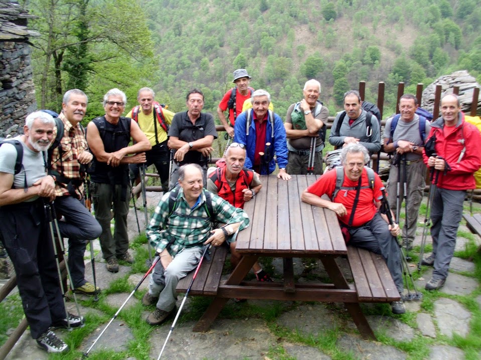 Fra loro anche un maestro di sci taroccato: tanto non c'è neve! Il ritorno allungato incrementa notevolmente i tempi odierni. Partiamo in quindici da Ruspesso, 940, dove termina la strada per l'Alpe Ompio.  L'escursione più impegnativa del solito spaventa, ma attira. Nuvole e sprazzi di sole. Rapidamente, lungo il sentiero A54 che più avanti diventerà A52c, raggiungiamo l'alpe e il Rifugio Fantoli, 1000. Sempre in direzione nord, che poi sarà ovest e nord – ovest nella parte finale, proseguiamo per l'Alpe Caseracce, 1238, aggirando sulla destra (oriente) il Monte Faiè. Breve sosta in contemplazione della Val Grande e si riparte per l'Alpe Pianezza e la Colma di Vercio, 1255, (un’ora e un quarto da Ruspesso).