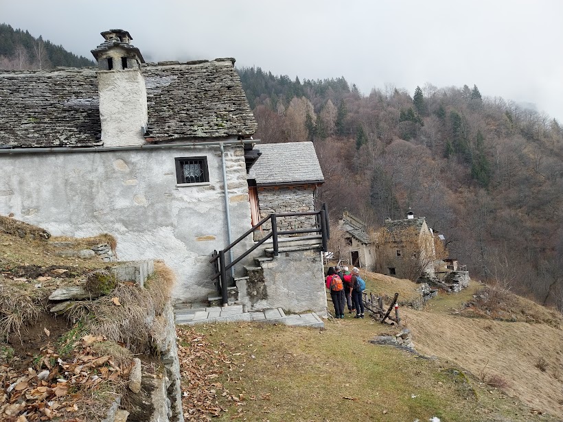 In orario piuttosto comodo ci troviamo per il caffè a Varzo e parcheggiamo nel giardino della nostra guida di oggi. Di due anziani, uno dei quali in condizioni quasi pietose per virus e scarso allenamento, si occuperanno oggi tre badanti e un medico competente nonché guida dell’escursione. In quattro ore ci accompagnerà in molte delle belle frazioni e degli alpeggi bassi del principale comune della Val Divedro.