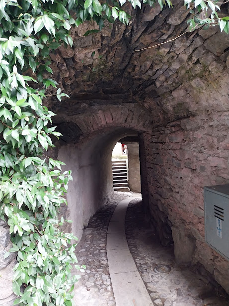 Una maestosa gradinata in discesa ci porta alla chiesetta, a lato della strada che sale a Dreuza e Solcio. Ci mangiamo un panino, accompagnato dalle consuete squisitezze delle badanti, in tutta calma. Riprendiamo il cammino sulla strada verso Dreuza e, dopo un centinaio di metri, troviamo sulla destra il Sentiero dei Tassi, pianeggiante, non indicato sulla cartina. Attraversiamo su un ponticello il Rio Sangioanni ed arriviamo a Casa Grande, 834. Scendiamo all’Oratorio di Durogna, 695, e di qui la strada asfaltata ci porta alla bellissima frazione di Cattagna, dove gli artigiani del sasso hanno creato cose bellissime.