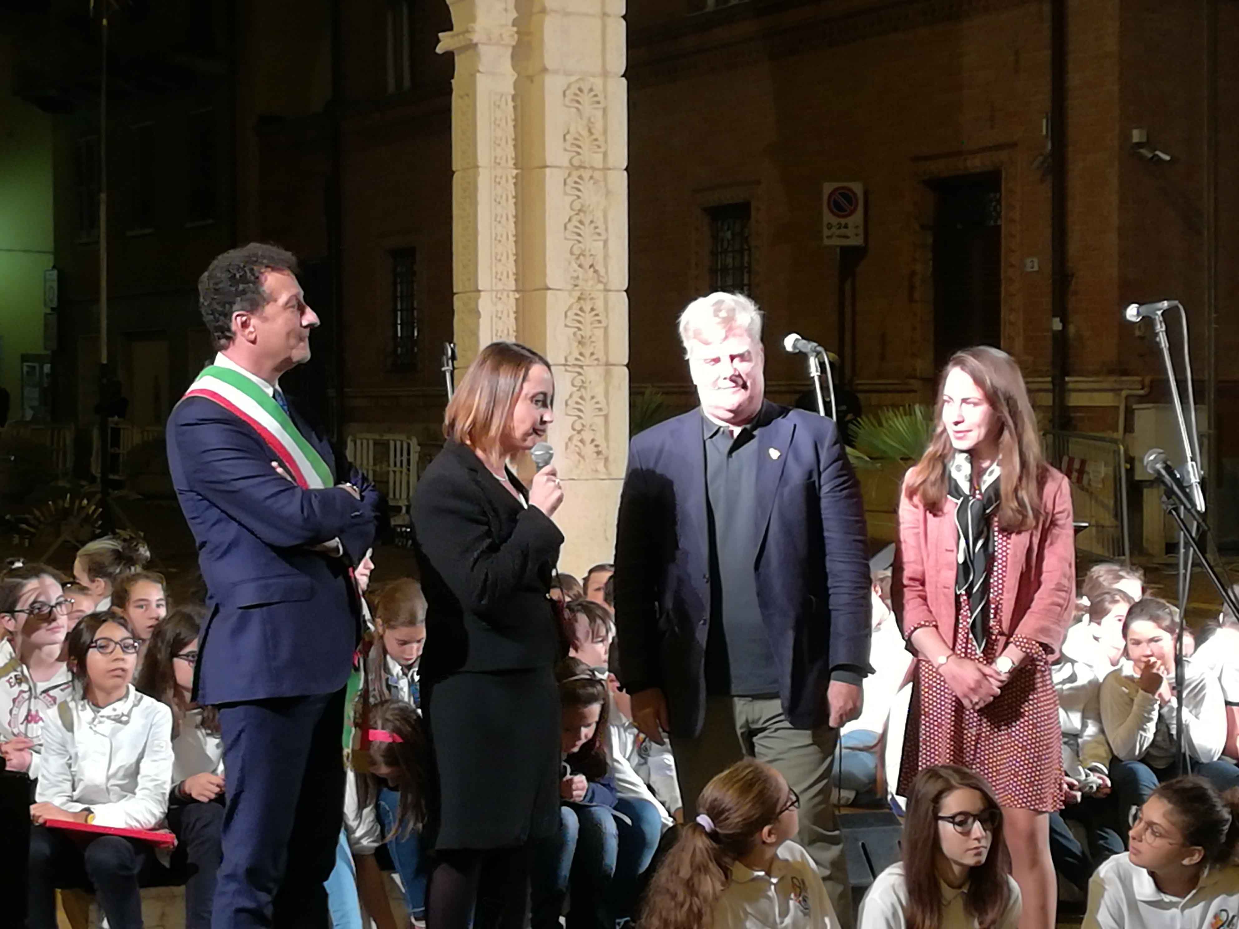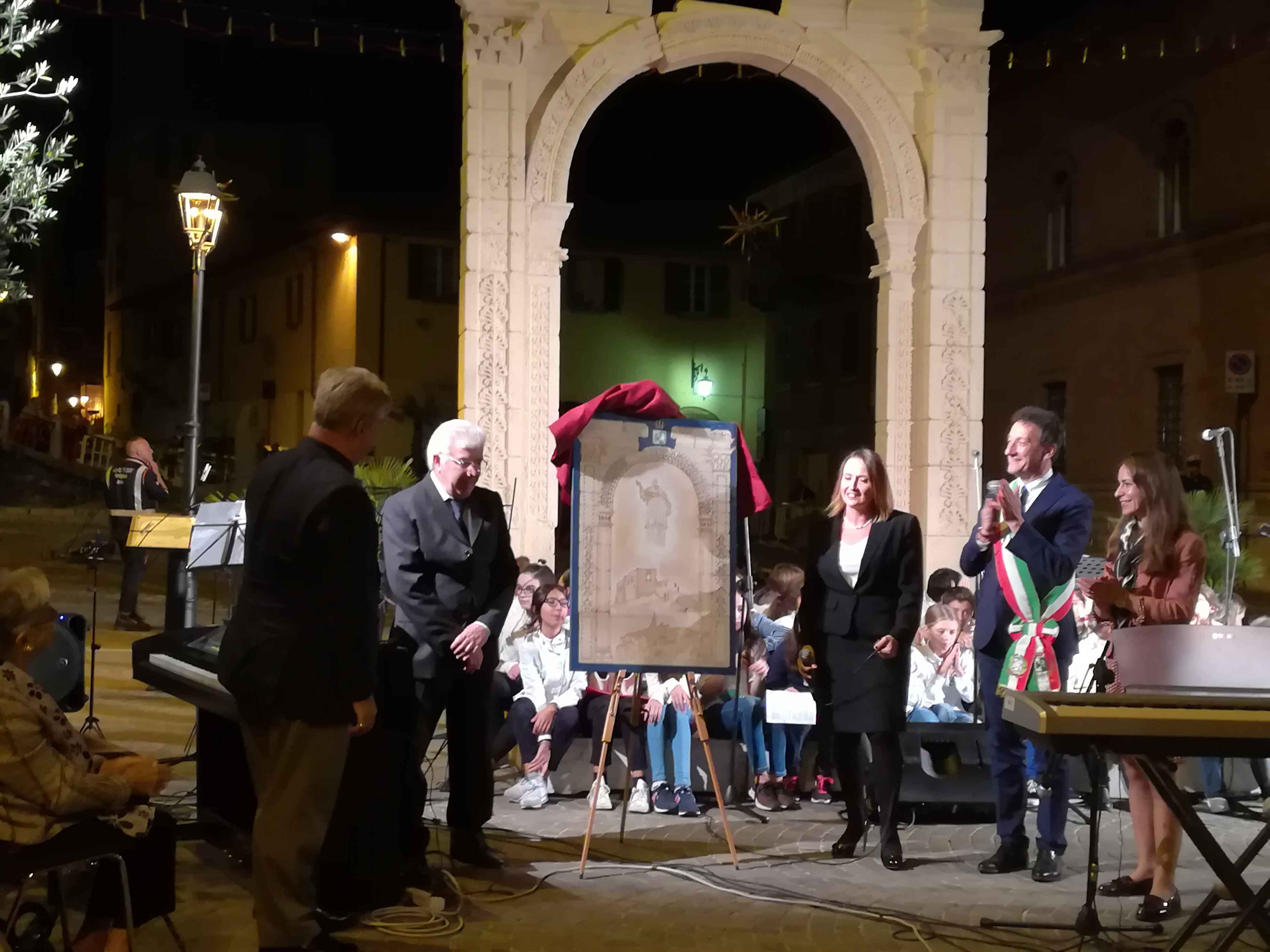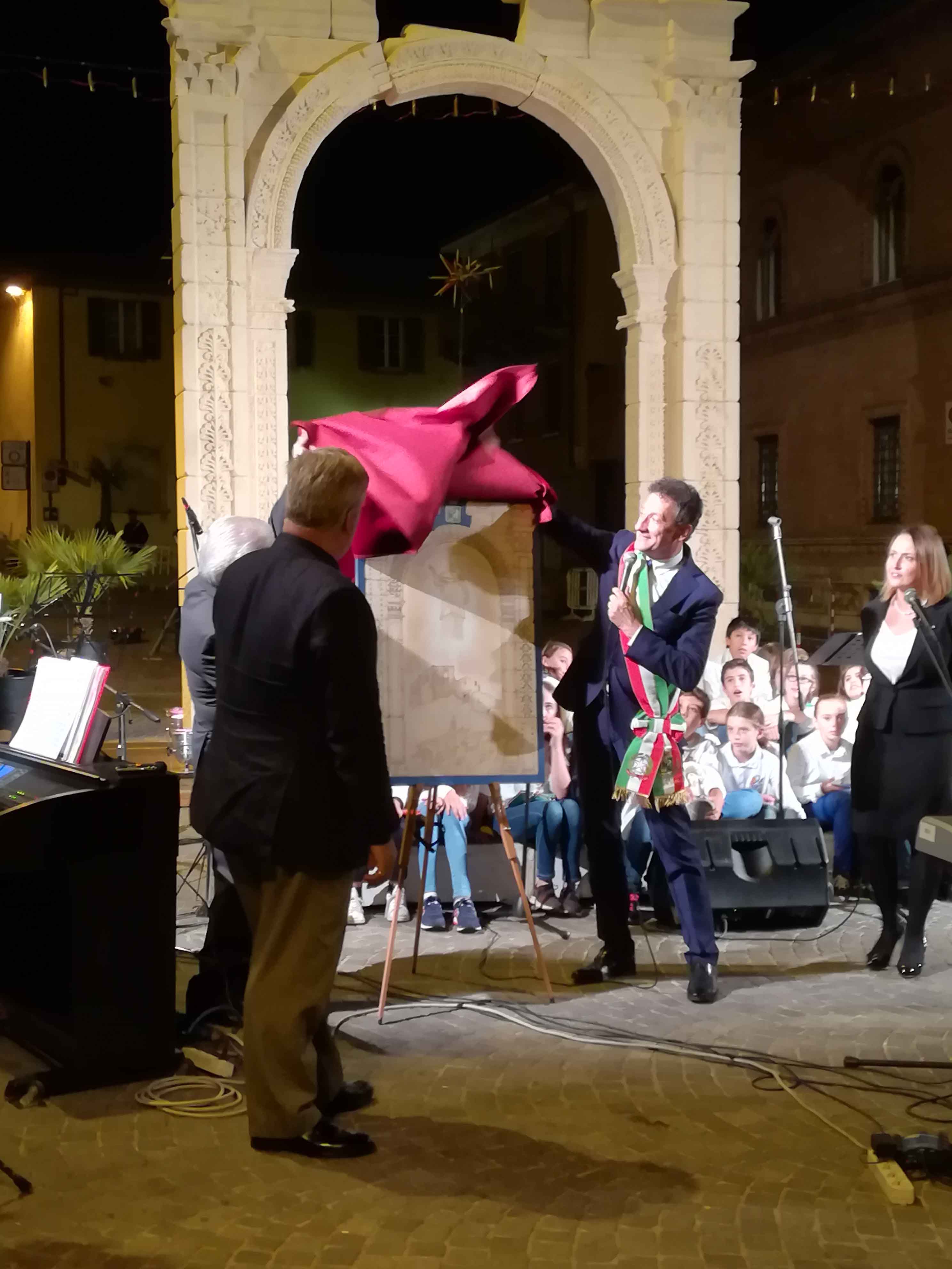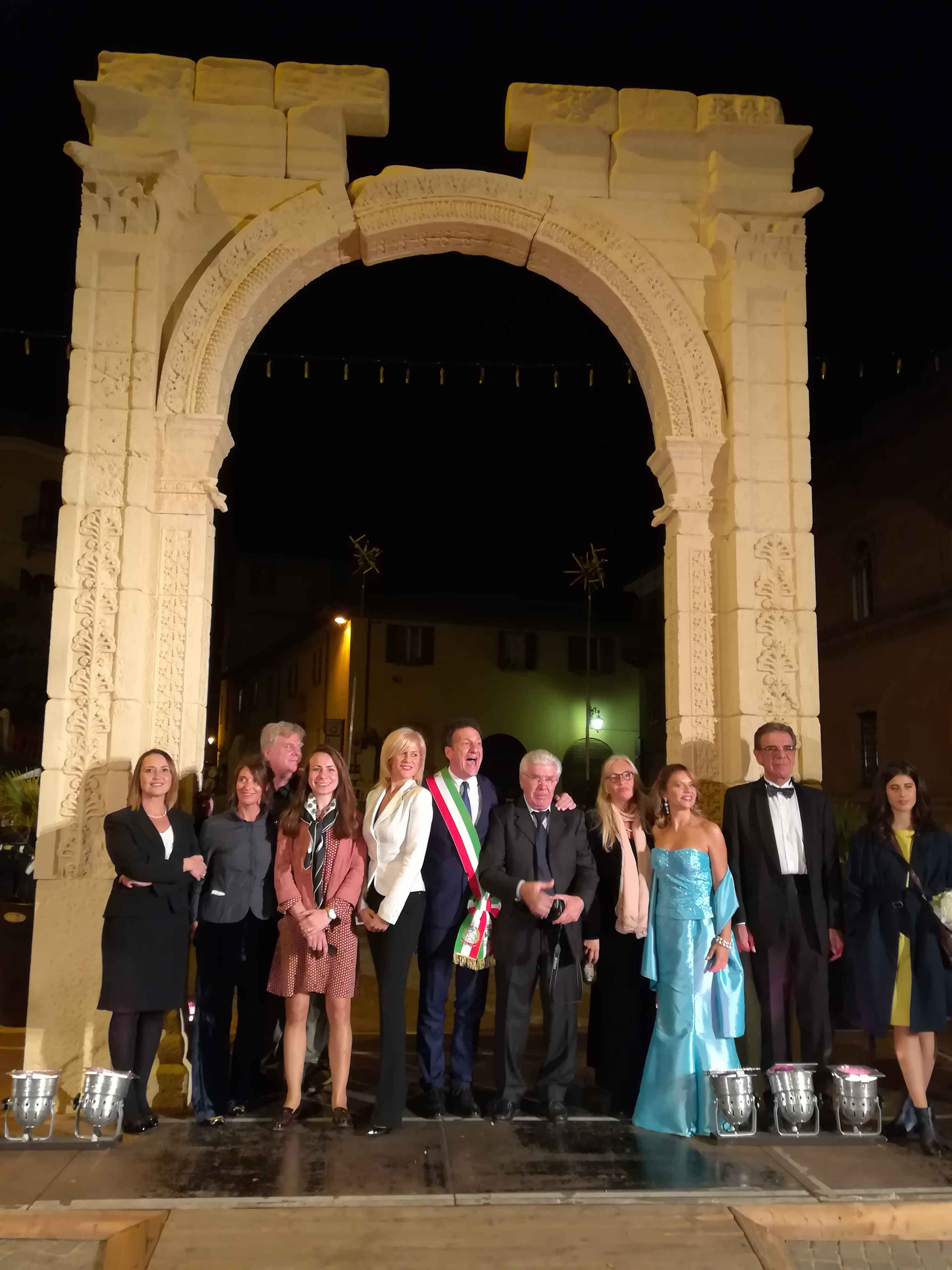 cerimonia per salutare l'Arco di Palmira in partenza per Parigi. Venerdì 29 settembre, in numerosi si sono ritrovati in Piazza San Graziano per dare l'ultimo saluto alla riproduzione dell'Arco divenuto simbolo di pace e umanità e che nei suoi cinque mesi di permanenza in città ha visto sfilare migliaia di persone e scolaresche provenienti da tutta Italia e non solo, a testimonianza di “come nella vita sia importante riuscire a lasciarsi alle spalle le negatività, ricordandosi quotidianamente quanto la vita sia bella e come vada vissuta appieno e sempre nel rispetto delle persone”. Era stato proprio questo l'invito che il sindaco Alberto Gusmeroli aveva rivolto alla comunità durante la cerimonia d’inaugurazione, svoltasi lo scorso 29 aprile; in molti hanno dato dimostrazione in questi mesi di averlo interiorizzato e nel discorso di commiato, Gusmeroli ha ricordato tra tutti i visitatori della riproduzione Waled e Omar al Asaad, figli di Khaled al Asaad (l’archeologo custode del sito di Palmira, brutalmente ucciso dall’Isis nel 2015, ndr): “Un uomo ucciso nel corpo ma non nelle idee, nelle speranze e nell’esempio”. Roger Michael e Alexei Karenoska dell’Ida, Institute for digital archaeology, si sono complimentati con l'Amministrazione e con tutti i cittadini che hanno dato segno di aver colto sino in fondo il vero significato dell'installazione: “Quando è partita l'idea di riprodurre l'arco di Palmira, non tutti erano favorevoli - ha ricordato Micheal - Io credo che se quelle persone fossero state qui ad Arona il 29 aprile scorso e avessero visto tutta la gente che con gioia ha attraversato l'Arco, ebbene quella sarebbe stata la miglior dimostrazione di come il suo significato sia stato compreso e condiviso. Ovunque l'Arco sia stato esposto, Londra, Dubai, New York, Firenze le persone hanno avuto modo di capire cosa significa la fratellanza e chiunque l’ha visitato è diventato parte di una tradizione, portatore di speranza e pace. Ecco la magia dell’Arco risiede proprio nella sua capacità di far nascere relazioni e ad Arona sono state le migliori mai instaurate”. Hanno sottolineato queste parole le voci di Matilde Mirotti che ha introdotto la serata con la sua Damasco e la soprano Gabriella Selvaggio dirette dal Maestro Paolo Beretta. La cerimonia, condotta da Simona Arrigoni, è stata aperta dalla Nuova Filarmonica Aronese che ha eseguito gli inni per poi lasciare spazio alle voci dei 120 ragazzi del coro dell’ IC Giovanni XXIII accompagnati dai prof. Antonio Dellacà e Marta Valerio, diretti dal Maestro Marino Mora. Prima dei saluti, la consegna di un’opera unica realizzata dall’artista aronese Nicola Malcangio che ricorderà per sempre all’ Ida la florida e sincera collaborazione con l’Amministrazione comunale in occasione di questo straordinario evento straordinario che ha regalato città una visione internazionale di tutto riguardo. La serata si è conclusa con uno spettacolo pirotecnico musicale che, sulle note della Carmina Burana, ha salutato l'Arco ripercorrendone in modo unico e altamente suggestivo la storia: dai fuochi rossi della distruzione al bianco della rinascita nel gran finale.