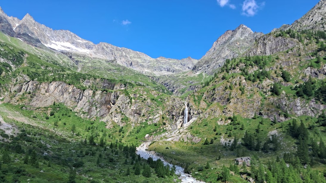 Entriamo nella valle, quasi pianeggiante fino a Crocette, 1360, la “Città Morta” della vecchia miniera d’oro (tre quarti d’ora). Il letto del torrente reca i segni pesanti dell’ultima grande “buzza”. Qui c’è un rifugio del CAI di Piedimulera e una sorgente d’acqua fresca che sgorga dalla punta di una piccozza. Ci sono lavori in corso poco oltre. Il mio atroce sospetto si materializza: stanno costruendo una grossa centralina idroelettrica.