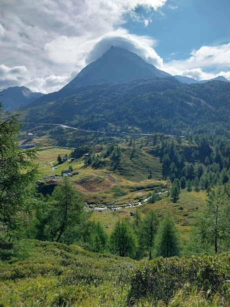 Ci incuriosisce la somiglianza al nome walser del nostro gruppo: Murmäta. Qui torniamo sulla destra orografica del torrente ed iniziamo a salire, diretti ora ad occidente. Il sentiero è comodo ed evidente, il passo tranquillo. A quota 2133 troviamo un bivio. A destra si va al Bistinepass, noi andiamo a sinistra verso la Magelicke. Ci concediamo anche una breve pausa colazione, mentre il vento si attenua, le nubi fuggono verso nord e i muscoli caldi ci ridanno un giusto calore, non propriamente estivo ma ideale per camminare dopo le grandi calure del fondovalle.