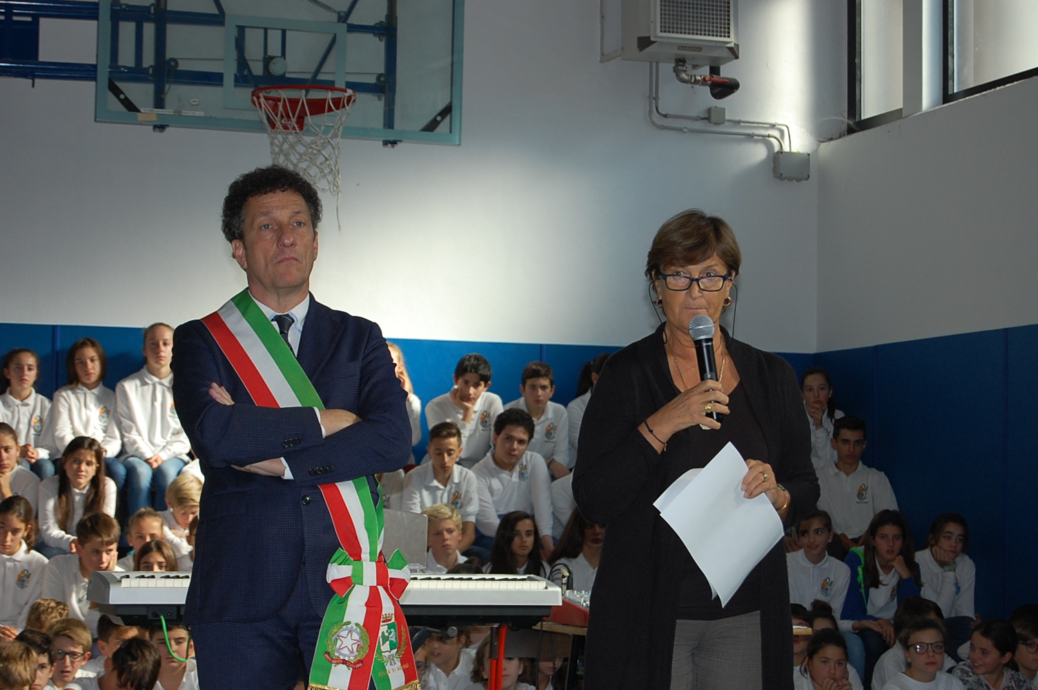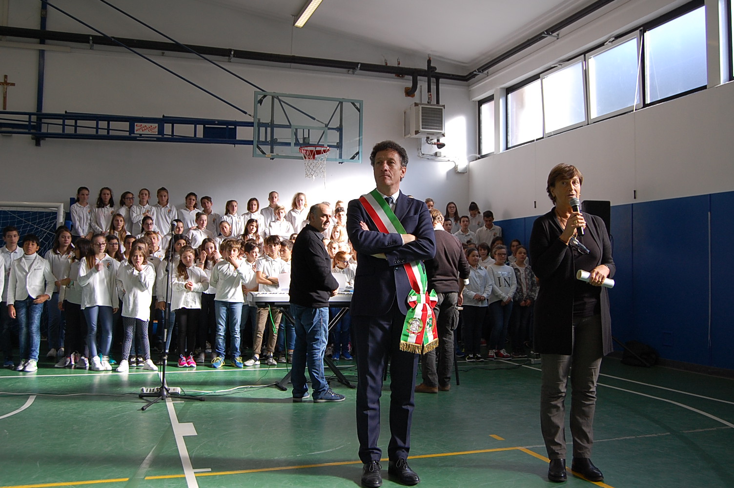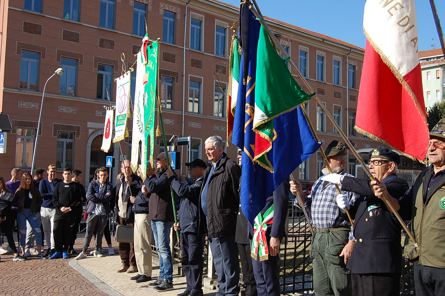 della corona ai piedi del monumento ai Caduti in Piazza De Filippi, si sono aperte le celebrazioni per la giornata dell'Unità nazionale e delle Forze Armate, anticipata a venerdì 3 novembre per coinvolgere gli alunni delle scuole con interventi diretti volti a sensibilizzarli sull’argomento. Il sindaco Alberto Gusmeroli, alla presenza delle rappresentanze delle Forze Armate, delle maestranze e delle associazioni cittadine, ha proposto agli studenti dell’Enaip riunitisi sulla piazza una riflessione oltre che sull’evento bellico in sé e sul ruolo delle Forze Armate, oggi sempre più impegnate nel sostegno della pace e della giustizia internazionale, anche sull’importante valore del rispetto: “Requisito imprescindibile per una convivenza democratica, coesa e in continua crescita”. Dopo l’intervento del parroco don Claudio Leonardi che ha richiamato le parole della preghiera che Papa Francesco ha rivolto ai caduti americani durante la visita nei giorni scorsi al memoriale di Nettuno, ha preso la parola il capitano dei Carabinieri Andrea Ceron per riattualizzare il concetto di amor di patria che ha consegnato al martirio migliaia di giovani durante la Grande Guerra: “Oggi questo sentimento deve spronare a essere buoni cittadini e ad aver rispetto tanto della comunità quanto delle istituzioni”. La cerimonia è poi proseguita nella palestra dell’Istituto comprensivo Giovanni XXIII, dove introdotto dalla dirigente scolastica Gabriella Rech che ha proposto una riflessione sulla classe d’acciaio e sull’importanza “di non dividere ciò che essa ha contribuito a unire”, il sindaco è tornato a rivolgersi ai ragazzi richiamandone l’attenzione sul messaggio di speranza che scaturisce anche e comunque dai fatti bellici: “Proprio dalla Grande Guerra nacque la prima cellula per la diffusione della pace. Fu, infatti, nel 1919 che fu fondata la Società delle Nazioni, primo organismo internazionale per la pace. Abbiate quindi sempre un pensiero di pace e rispetto, solo così potrete evitare il ripetersi della storia”. Infine ragazzi del coro della scuola, diretti dal professor Romano Longoni e accompagnati dal Maestro Marino Mora, hanno eseguito l’inno nazionale e alcuni famosi brani che ricordano il primo conflitto mondiale tra cui la Leggenda del Piave e il Signore delle cime, sottolineando l’approfondimento proposto dal professor Angelo Francesco Natale che ha ricordato agli alunni il sacrificio dei 600.000 caduti italiani le cui vite furono spezzate a difesa della patria: “Questa commemorazione v’insegni il rispetto, in ricordo di chi ha combattuto, e possiate sempre mostrare il vostro più sincero apprezzamento per il dono della patria e della libertà che vi hanno consegnato”. (A.M.)