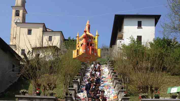 Librinfiore, lunedì 23 aprile, occasione di socialità gentile che ha richiamato sui 136 scalini della scalinata di piazza Martiri a Comignago, un buon numero di persone. "Un bilancio ancora una volta positivo – commenta Fabio Fichera, ideatore e organizzatore della manifestazione – L’ambiziosa idea di una piazza ideale si è materializzata nuovamente e in tanti, tra adulti e bambini, hanno accolto il nostro invito a trascorrere qualche momento di semplice stare insieme".Più di 1000 i libri che hanno trovato posto sui gradini tra gli allestimenti floreali degli studenti della scuola agraria Cavallini di Lesa e le opere degli artisti della Corte dell’oca. Quest’anno, il cuore della manifestazione è stato dedicato ai bambini. Sono stati, infatti, gli alunni della scuola primaria Ungaretti di Comignago i veri protagonisti della giornata. Coinvolti in più attività diversificate per età, i bambini hanno fatto brevi escursioni sul territorio per sperimentare scoperte e itinerari multidisciplinari immersi nella natura e tornare poi ai piedi della scalinata per una versione di scuola all’aperto che sicuramente resterà nella loro memoria.il pomeriggio invece è stato dedicato ai bambini delle prime classi con il racconta fiabe offerto dalla Corte dell’Oca e l’apertura della scalinata al pubblico. La manifestazione si è aperta, di fatto, nella serata di sabato 21 aprile nel suggestivo ed elegante scenario di villa Giannone con la prima del nuovo spettacolo di reading letteraria e musicale “Adamo e tutti gli altri” del gruppo teatrale “Zero, seicentodiciotto”, dove è intervenuto un numeroso pubblico che ha dato un riscontro pressoché unanime sulla buona riuscita dell’evento. (A.M.)