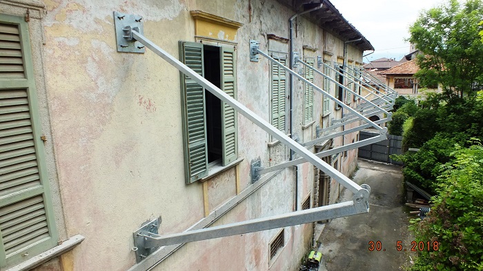 L’ing. Gattone spiega meglio cosa si intende per progetto reversibile: “Le opere sono state fissate all’edificio esistente mediante alcune barre filettate in acciaio inox che sono state inserite e sigillate nelle murature portanti esistenti. Pertanto, l’edificio nel suo complesso, da un punto di vista architettonico, non è stato compromesso dalla realizzazione delle opere; queste sono ben identificabili rispetto alle opere esistenti e all’edificio esistente e qualora la proprietà decidesse per un intervento di ristrutturazione dell’immobile, sarà possibile rimuovere tutte le opere realizzate, provvedendo alla sigillatura dei fori per i fissaggi delle carpenterie metalliche, con intonaci a base di calce oppure malte cementizie. Pertanto, le opere sono completamente reversibili”