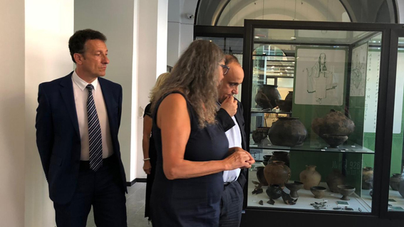 ARONA -09-09-2018 - Il Ministro dei Beni Culturali, Alberto Bonisoli, ha partecipato all'ultima giornata dell'edizione 2018 del Teatro sull'Acqua. Il Ministro, che ha dialogato in piazza San Graziano con Dacia Maraini, ha anche visitato insieme al sindaco e ad alcuni membri della giunta il Museo Archeologico cittadino e si è congratulato per il Teatro sull'Acqua, spendendo parole positive anche per i numerosi giovani volontari che collaborano all'evento.