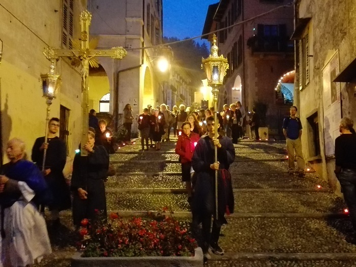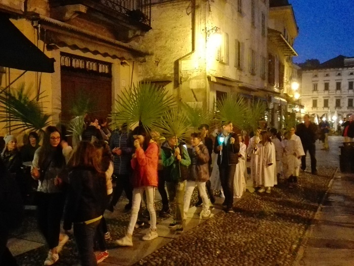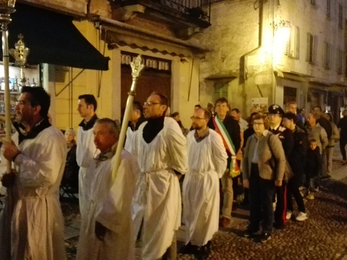 Quando la processione è uscita dalla chiesa parrocchiale si sono sentite le campane suonare a festa e la presenza della Confraternita dei Santi Bernardino e Marta e di quella del Santissimo Sacramento, le fiaccole portate dalle Consorelle del Rosario, le palme portate dai bambini e i trecento lumini che hanno abbellito la discesa della Motta e la piazza, hanno reso particolarmente emozionante e suggestivo il corteo, espressione di una fede viva e forte.