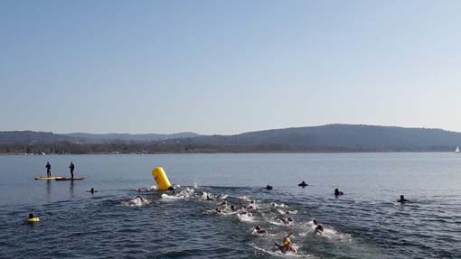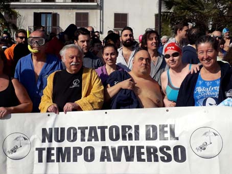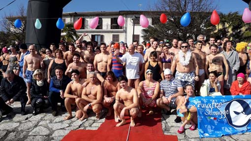 i partecipanti all'edizione 2019 del "Cimento invernale" svoltosi questa mattina, domenica 17 febbraio, ad Arona. La manifestazione, organizzata dalla Pro Loco insieme agli Amici del Lago, è giunta alla sua 43^ edizione. SI è trattato di un vero e proprio record, favorito anche dalle condizioni meteorologiche favorevoli. Un clima quasi primaverile, con l'acqua a 7 gradi, ha accolto i partecipanti. Prima, il tradizionale tuffo in gruppo, poi l'ice sprint, la corsa di 50 metri. In quest'ultima, i partecipanti sono stati una ventina. A vincere è stato Diego Novella, classe 1970, di Castelletto Ticino, secondo l'aroneseAberto Tampieri, presidente della Pro Loco e veterano dei cimenti con 41 presenze, terzo posto per Daniele Lucchi di Arona. La Coppa Vittorio Zenith per il più giovane cimentista è andata a Davide Danioni, classe 2003, mentre la Coppa “Ente Fiera” per la più giovane donna è stata assegnata a Corinnne Ibba di Maggiora, 12 anni. La più anziana, premiata dai veterani dello sport è stata veterani dello sport hanno offerto invece un premio a Carla Barbato giunta da Anzano (Como), classe 1932. La Coppa “Città di Arona” è andata a Ivano Bertolini di Omegna, classe 1947. Numerosi i riconoscimenti per i veterani: Bruno Danioni(36), Luigi Donno (21), Carlo Gavazzi (27), Mauro Ibba (21) di Maggiora, Andrea Zavatta ed Emanuele Bondesan di Arona (12), Stefano Frigerio (19) e il sardo Mario Serra (25). Soddisfazione è stata manifestata dagli organizzatori della Pro Loco, con il presidente, Alberto Tampieri, che ha sottolineato: "E' stata un' affluenza record ed una bella festa". (M.R)