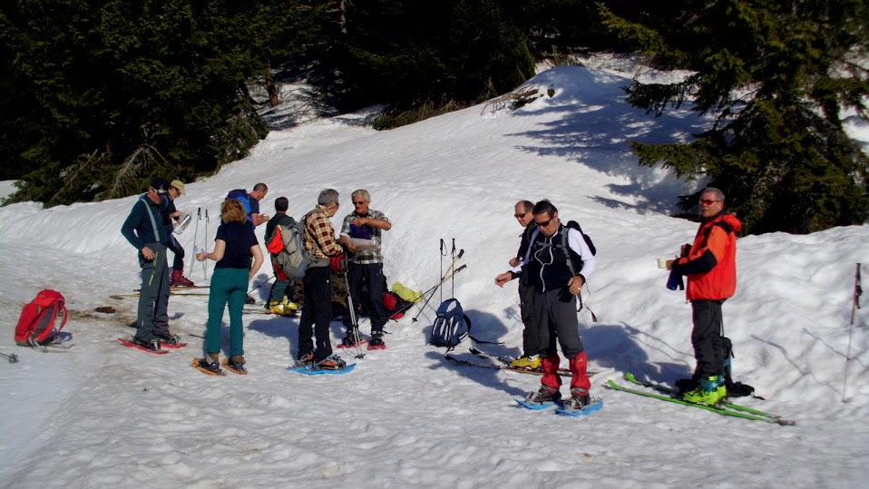 Si scattano foto per immortalare il brillante rientro dei due restaurati e si pranza ottimamente, in allegria. A fine pranzo, con la dovuta calma, salutiamo gli amici rallentati dalle ciaspole, che impiegheranno in discesa poco meno che in salita, trattandosi di un percorso di sviluppo molto lungo rispetto al dislivello. Noi sciatori “racchettiamo” un po’ nella parte alta, ma la neve discreta di oggi ci aiuta. Il tratto nel bosco fino a Sagersboden si percorre con molta prudenza e qualche salutare “spazza-neve” per evitare uscite di pista che, in alcuni punti, potrebbero essere assai controindicate. Da Sagersboden una splendida discesa su questa bella pista, perfettamente battuta, ci riconcilia con lo sci facile e divertente.