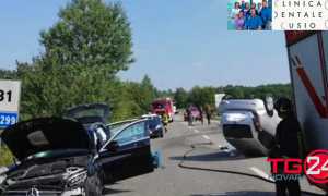 Auto esce da un cancello e urta una moto: due feriti